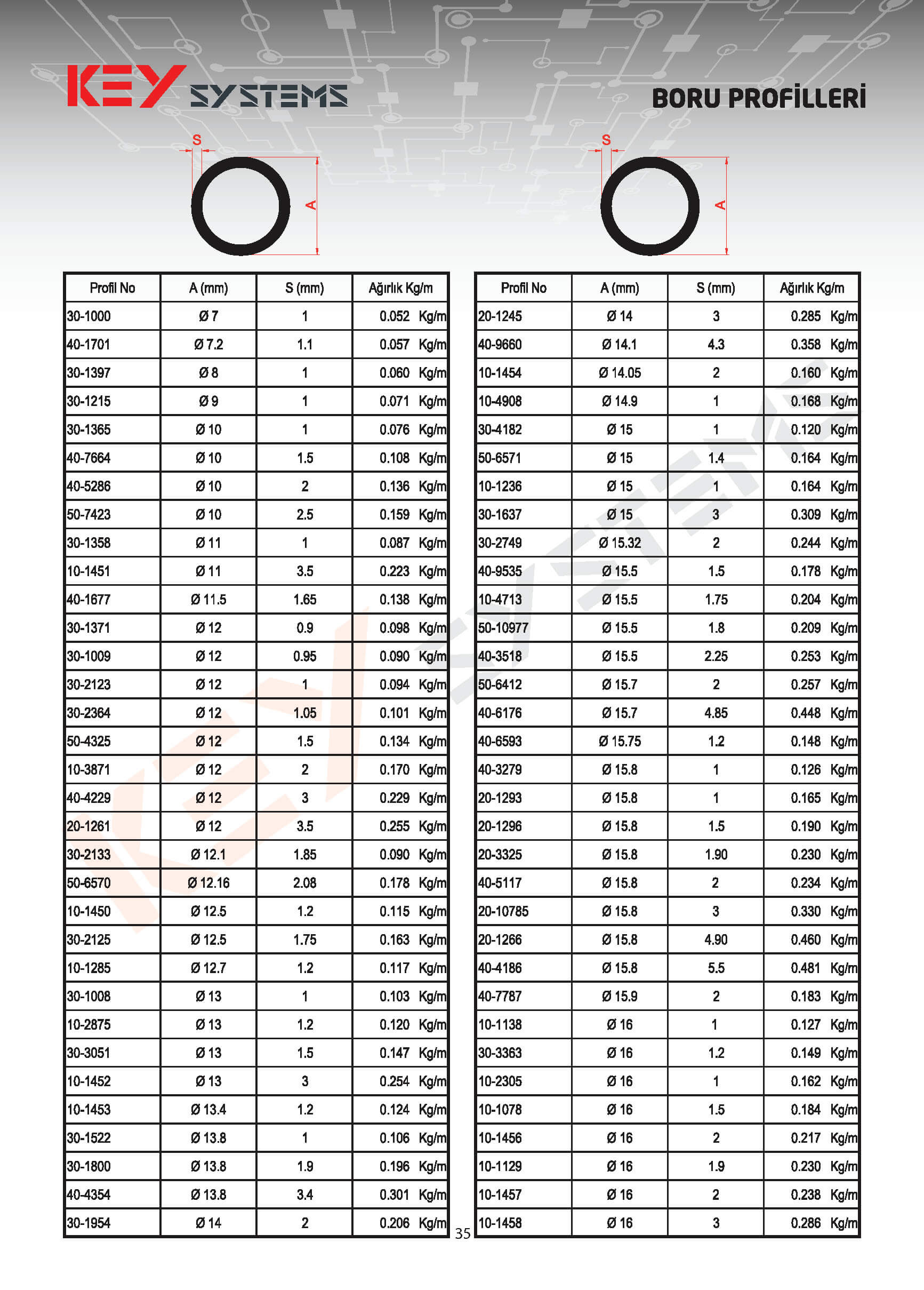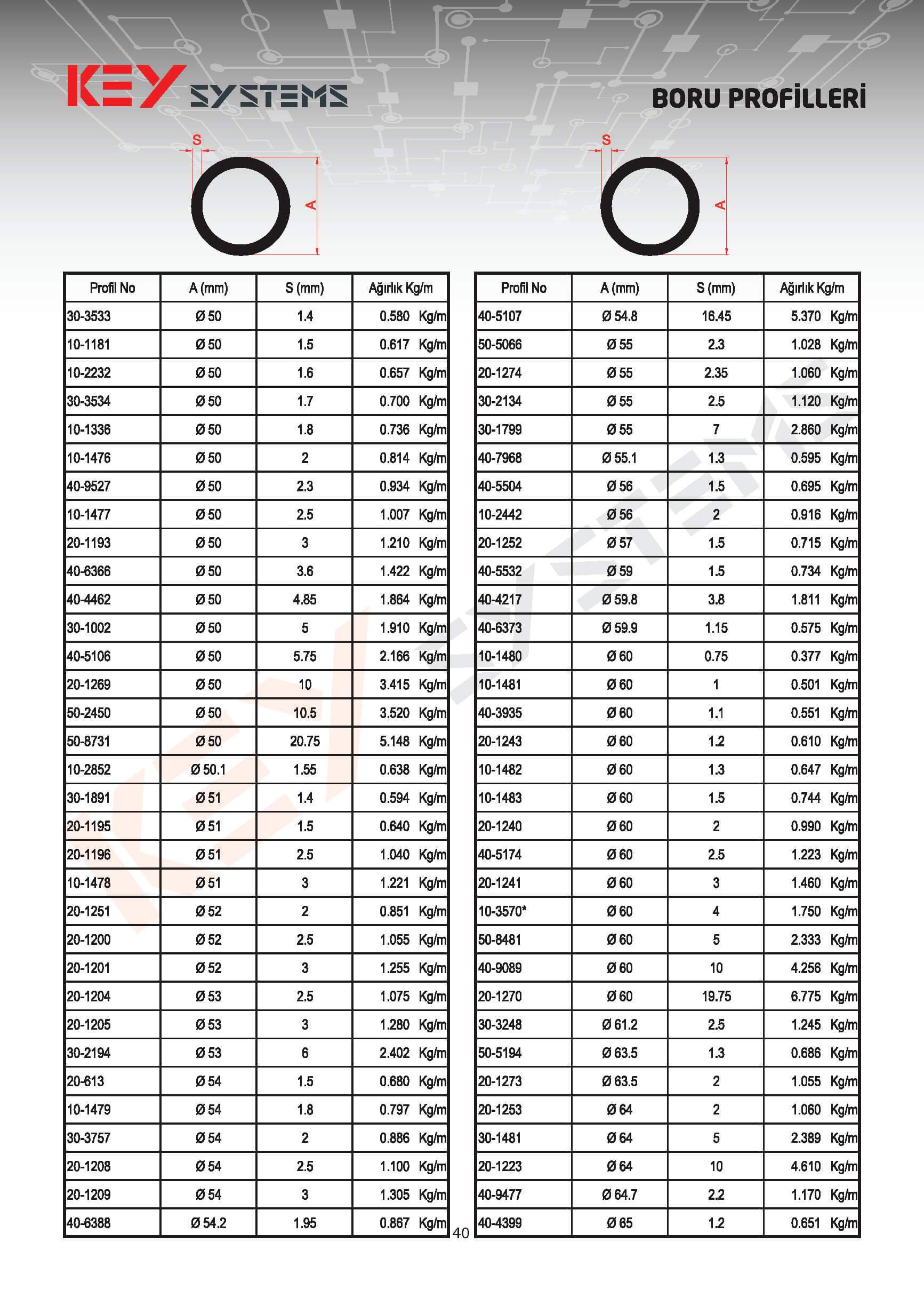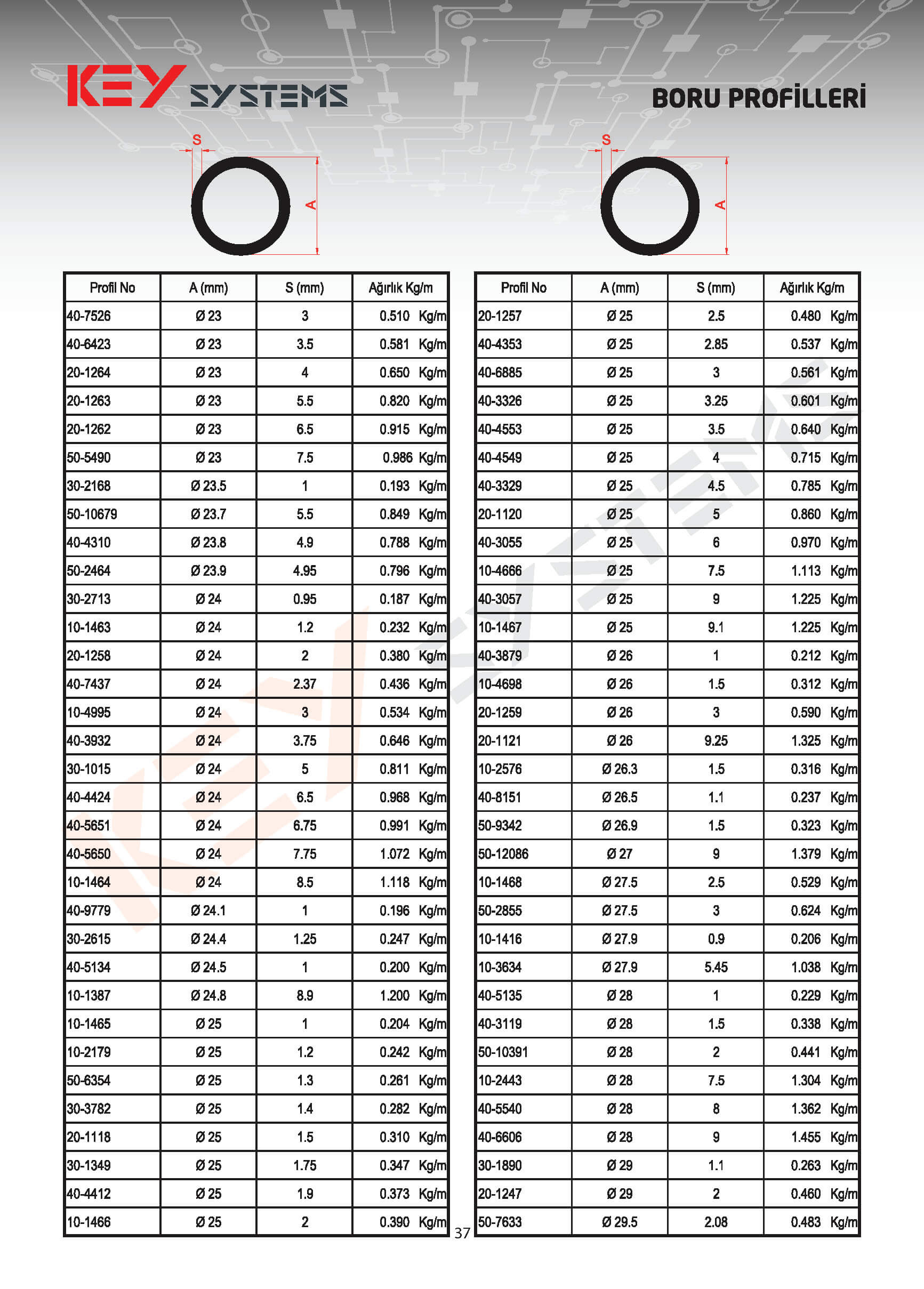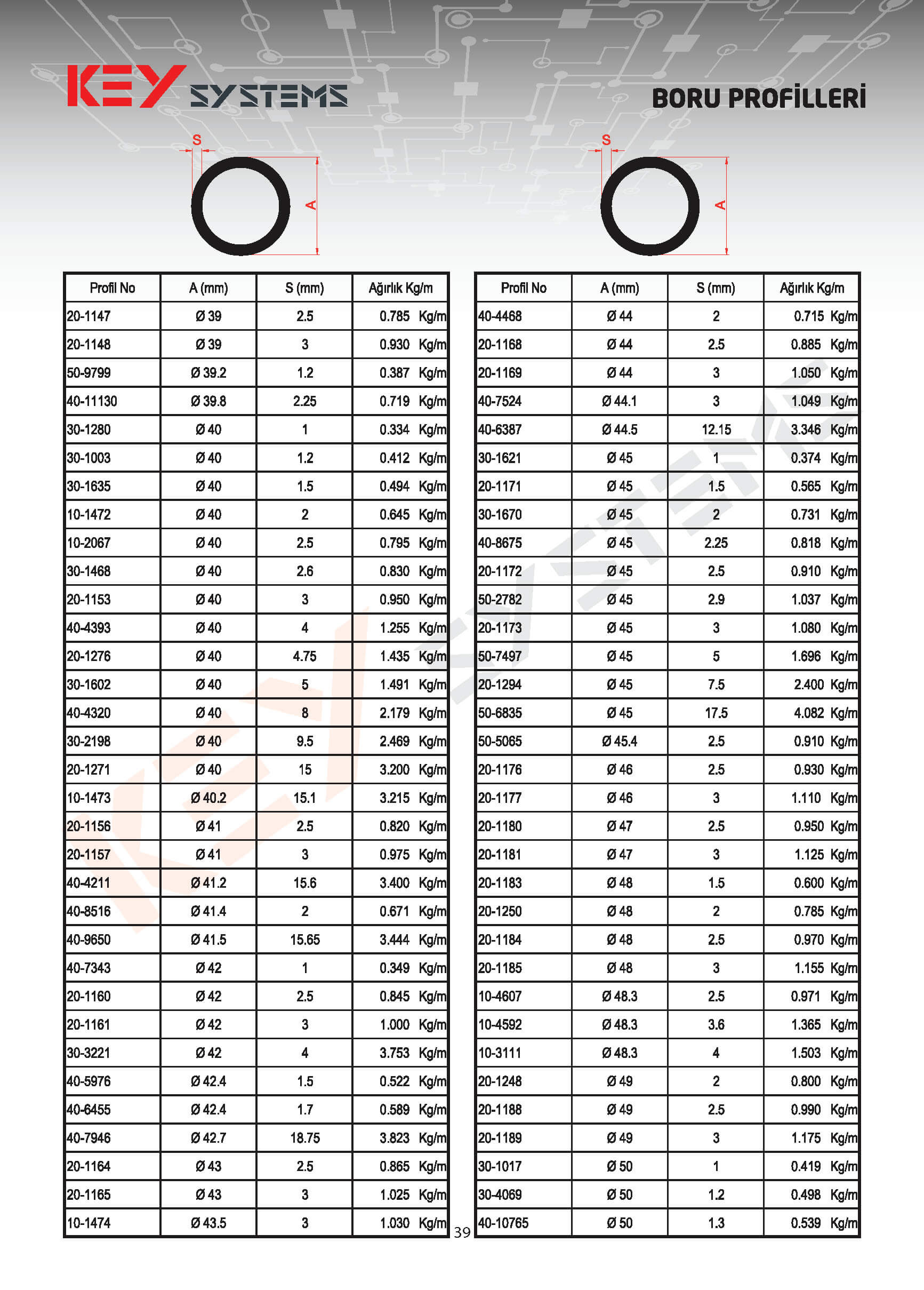 KEY YAPI SİSTEMLERİ olarak farklı boyut ve ebatlarda standart alüminyum boru profilleri ile ihtiyaçlarınıza uygun ürün çeşitliliği sayesinde sizlere en iyi hizmeti vermektedir. Eloksal ve Elektrostatik toz boya seçenekleri ile istenilen yüzey rengi uygulanabilmektedir. | ||