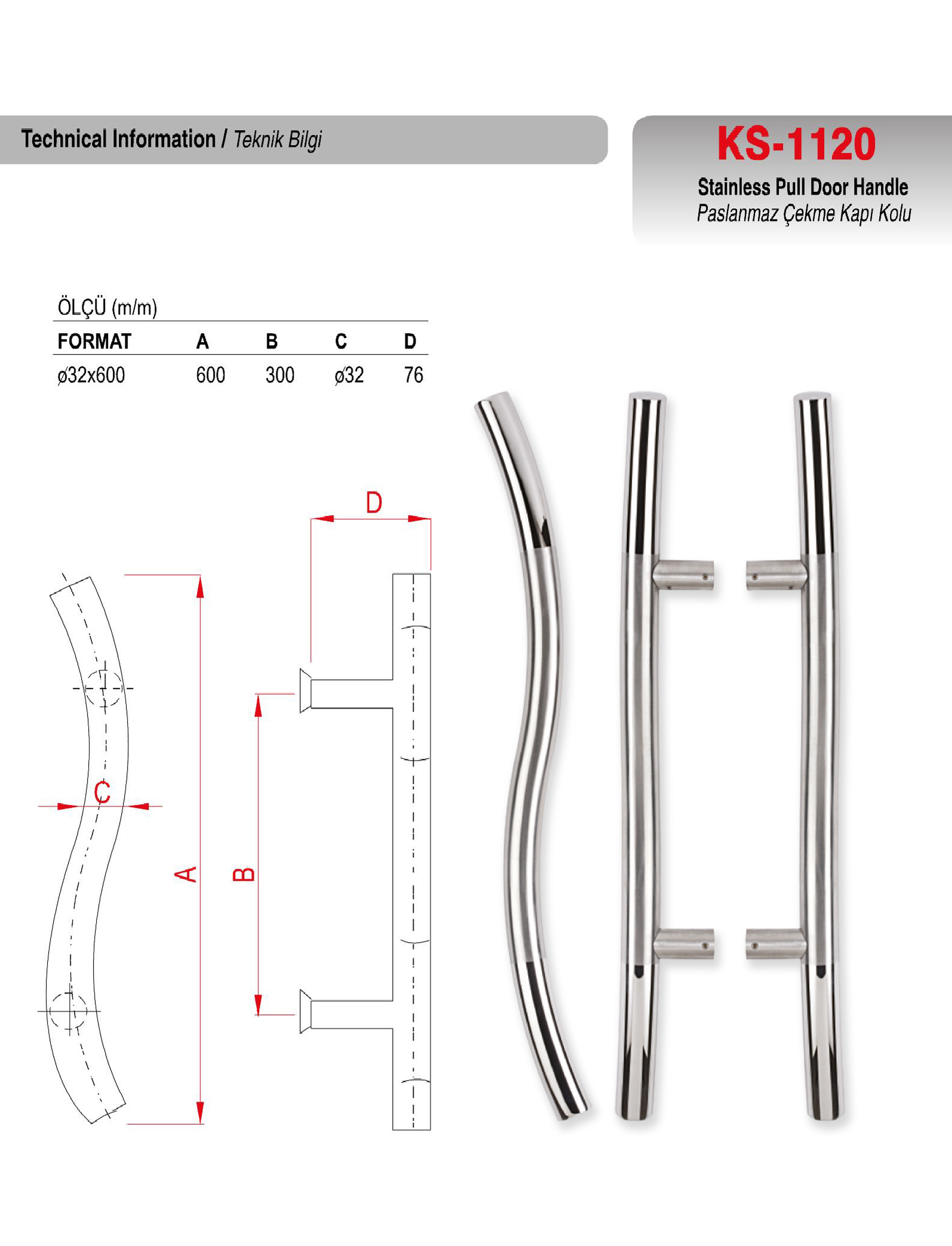 PASLANMAZ ÇEKME S MODEL KAPI KOLU | KS-1120 | |