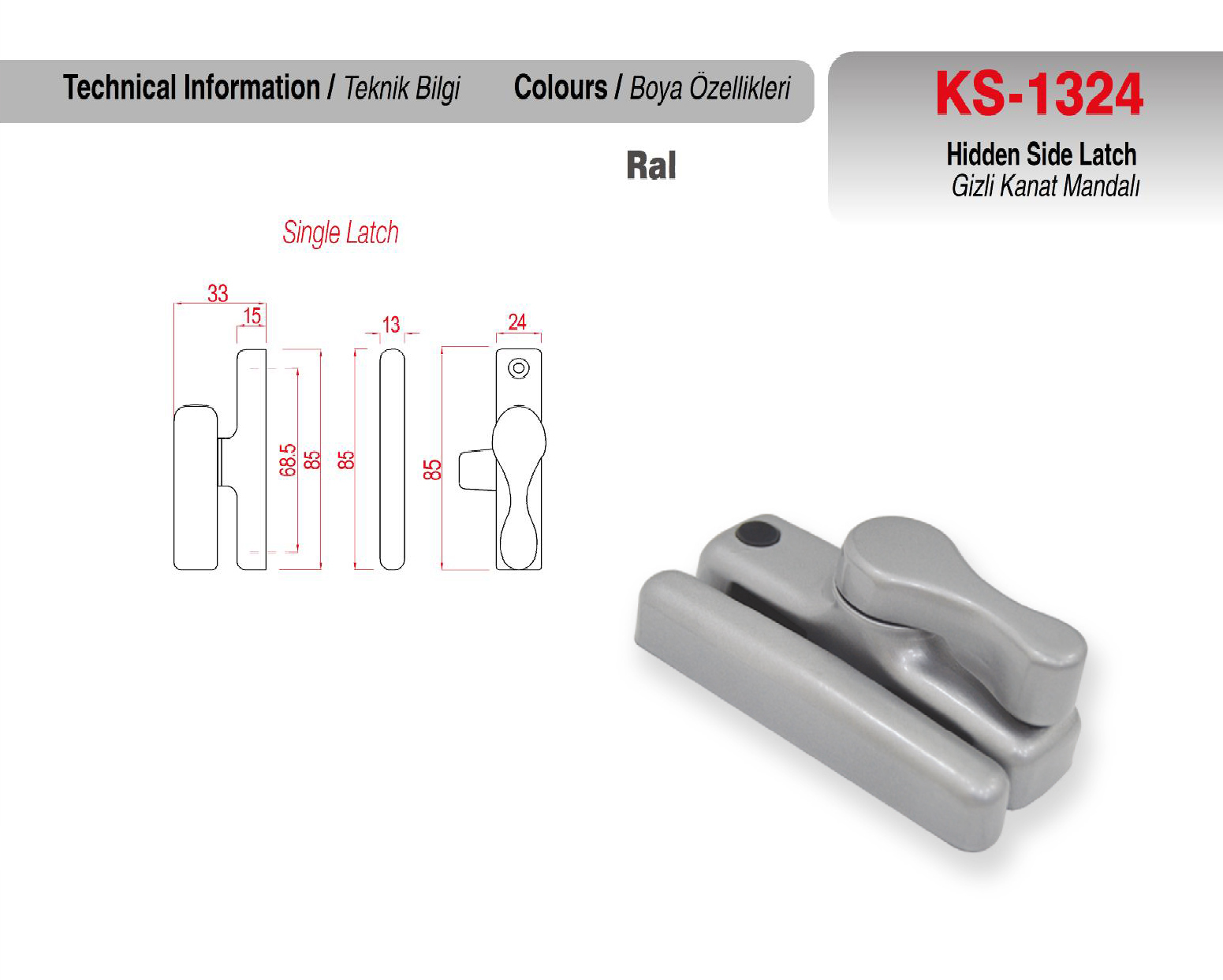 GİZLİ KANAT PENCERE KOLU MANDALLI | KS-1324 | |