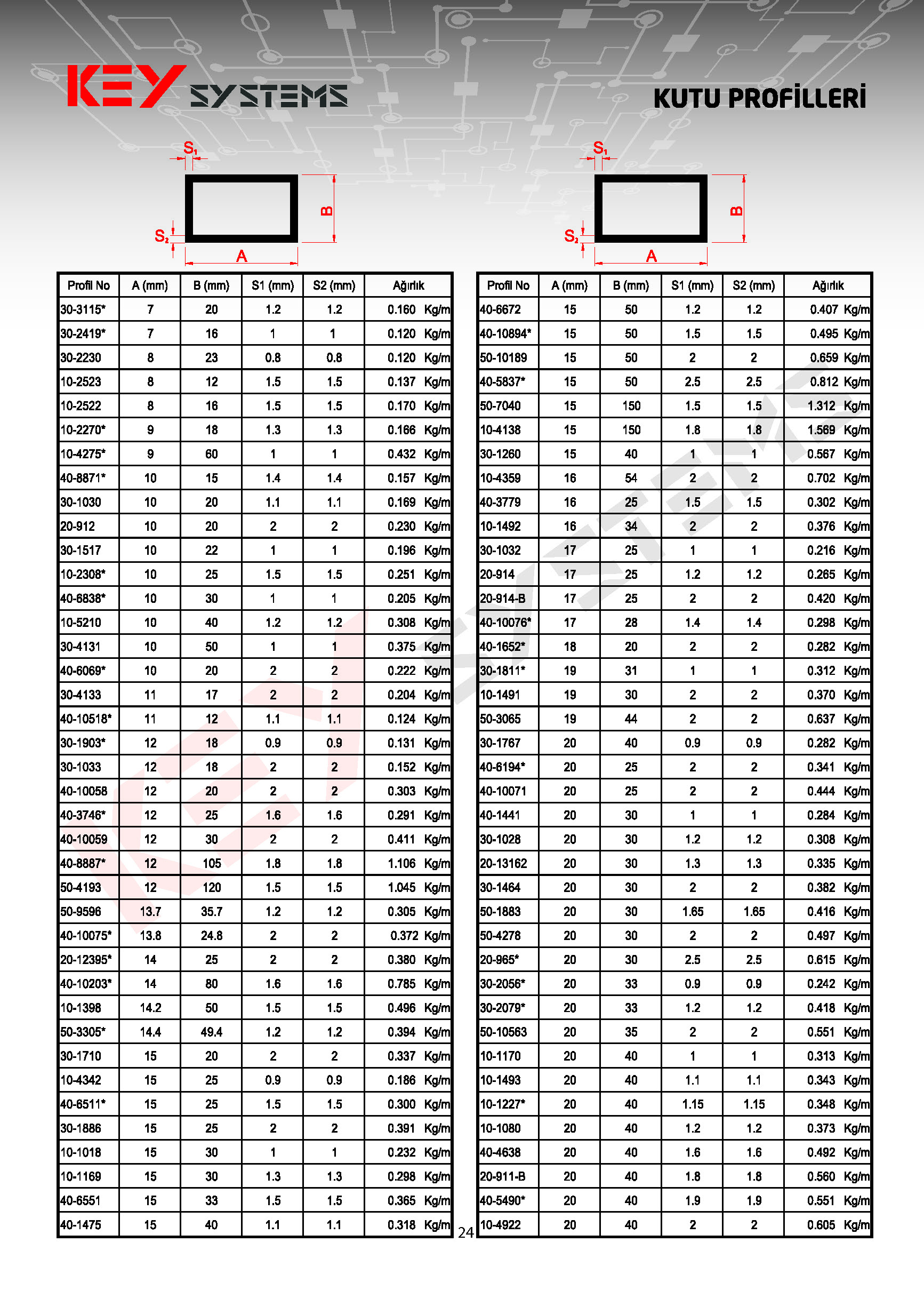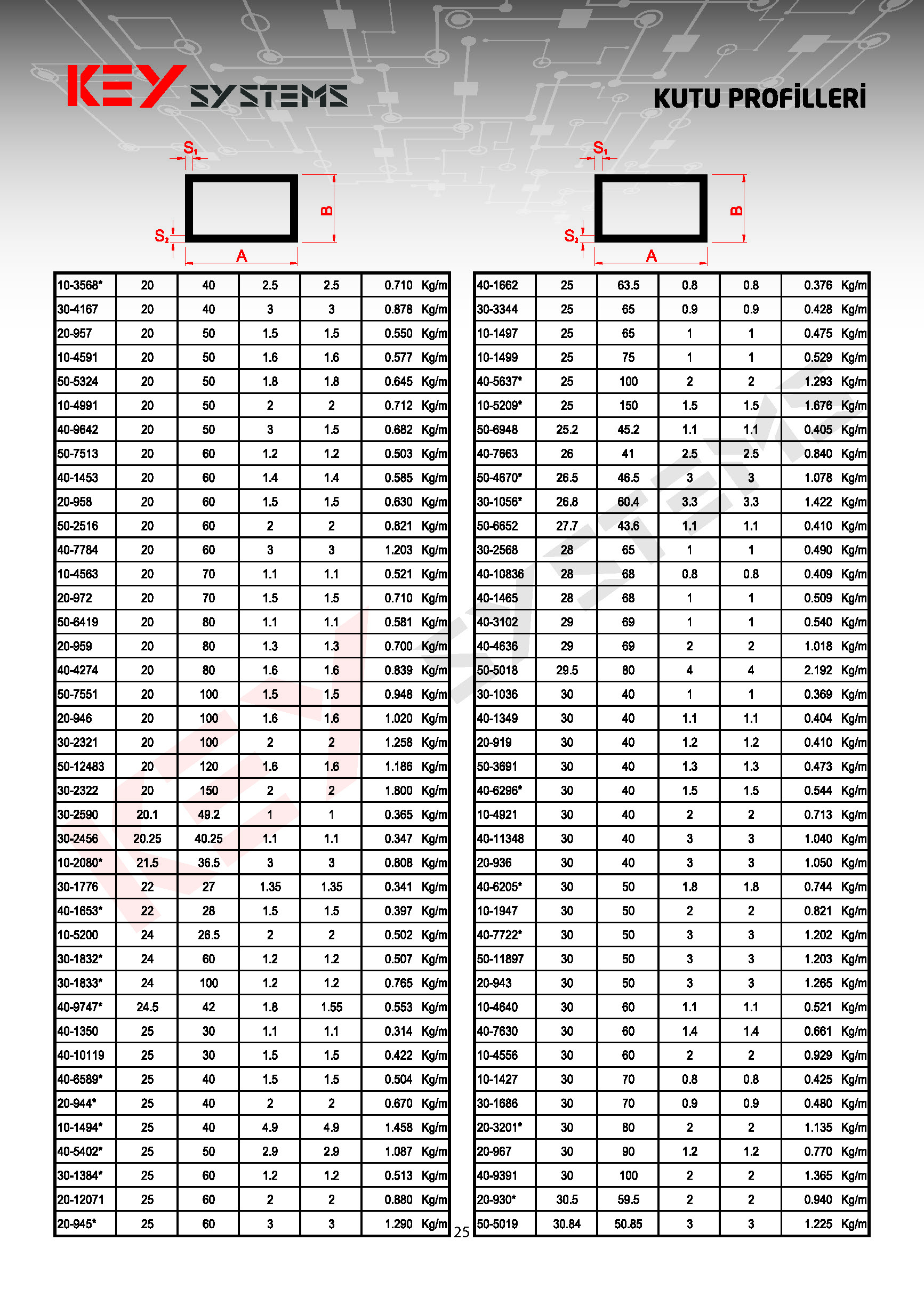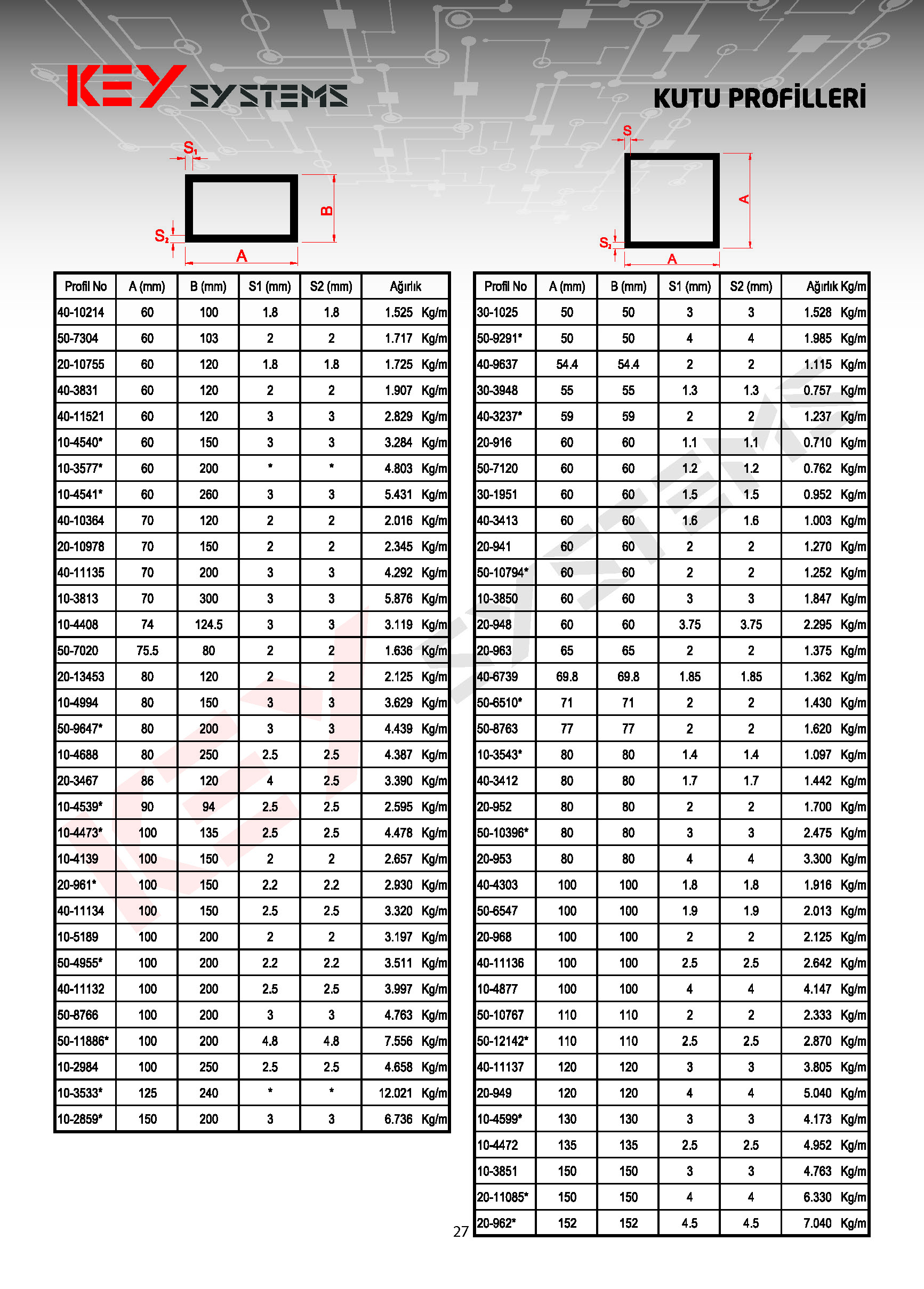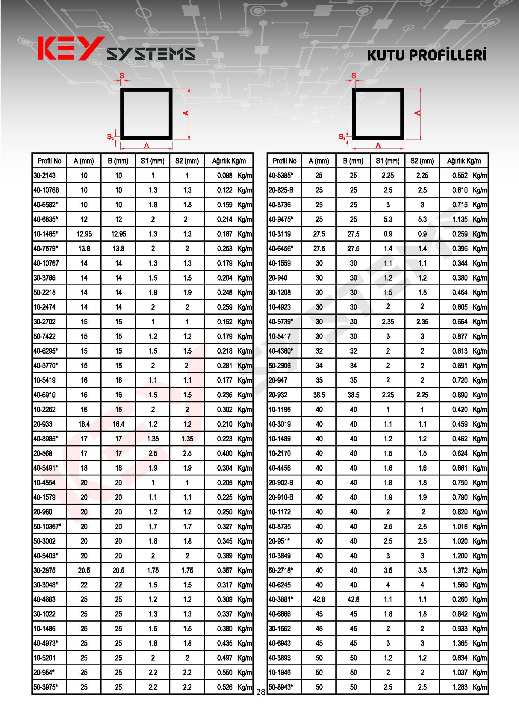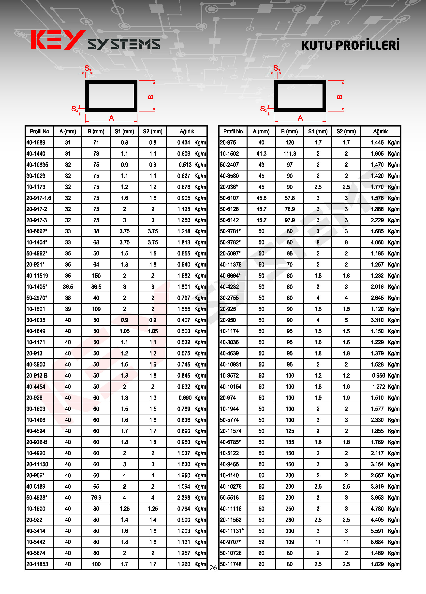 KEY SYSTEMS STANDART PROFİLLER | KEY YAPI SİSTEMLERİ | |