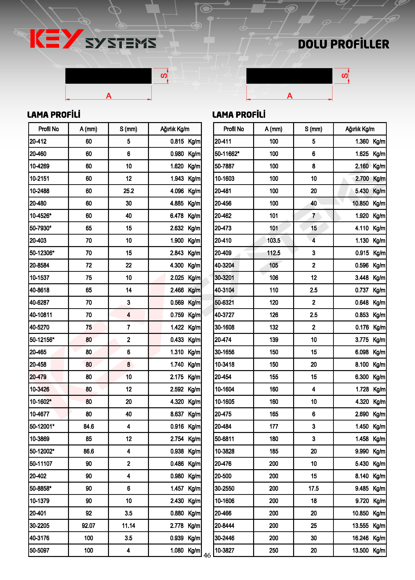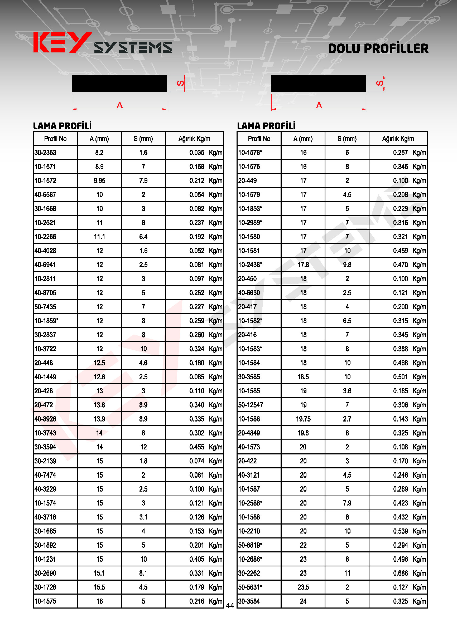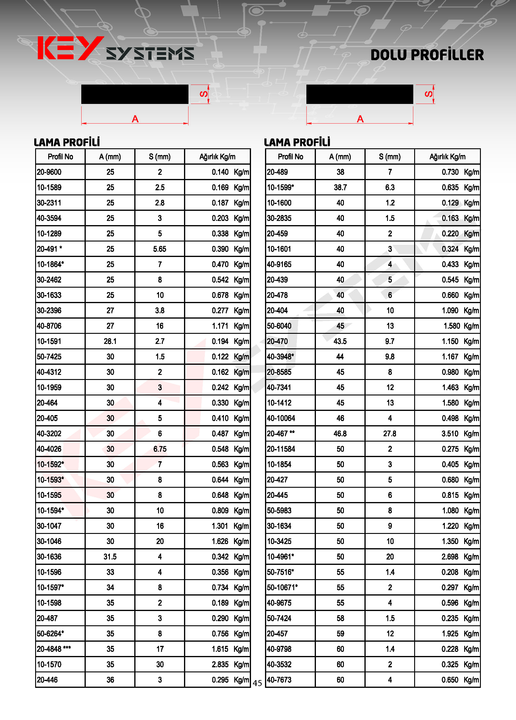 KEY SYSTEMS STANDART PROFİLLER | KEY YAPI SİSTEMLERİ | |