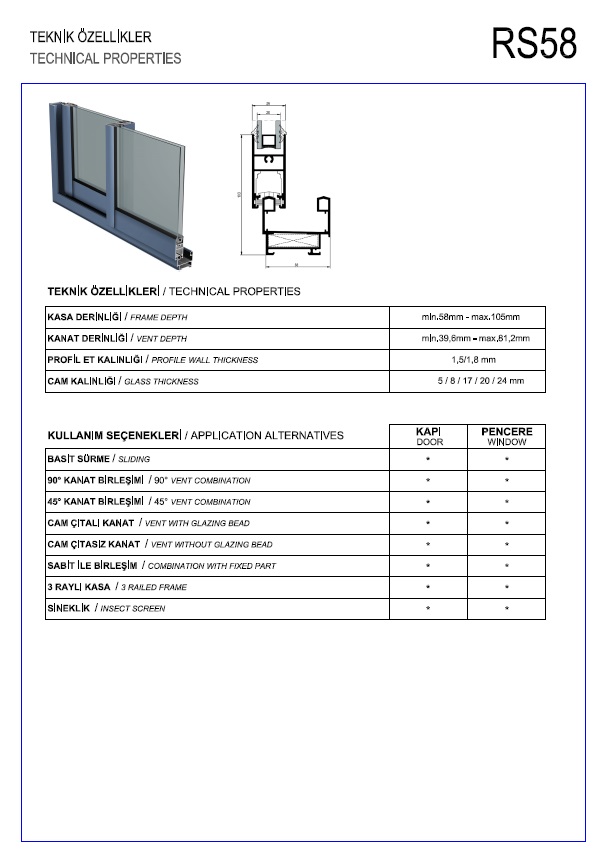UYGULAMA SEÇENEKLERİ | PENCERE | KAPI |