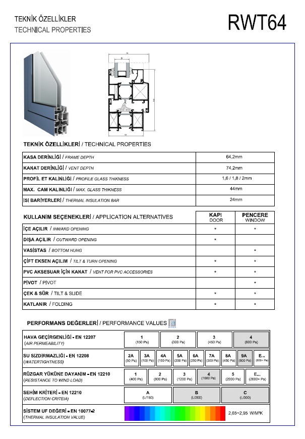 Isı Yalıtım Değeri (UF) | 2,980 W / m² k | |
