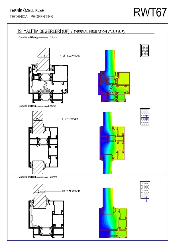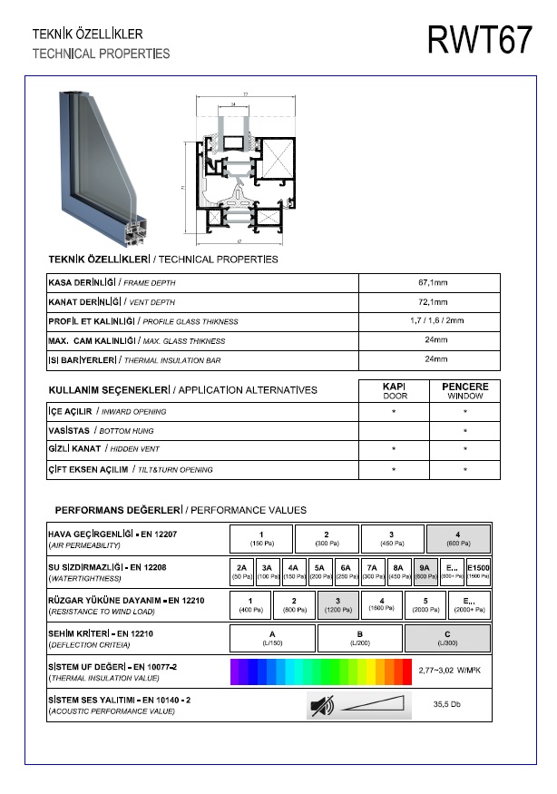 Isı Yalıtım Değeri (UF) | EN 10077-2 | 3,04 W / m²k |